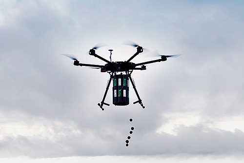 V Selah na Krasu je potekala predstavitev setve semenskih kroglic z droni, s katerimi bo hrvaško podjetje Projekt O2 posejal hektar državnega gozda na strmem terenu, ki ga je močno prizadel lanskoletni katastrofalni požar.